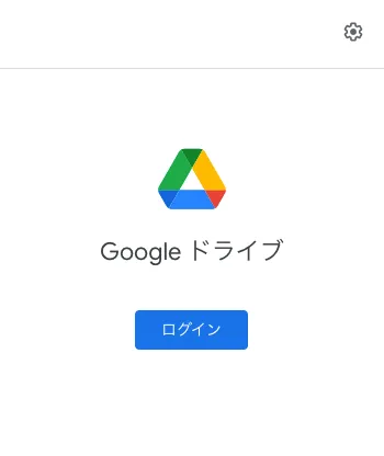 そのマークをクリックすると以下のウィンドウが表示されます.こちらからGoogleドライブにログインすることもできます.