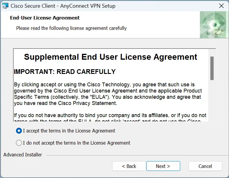 手順D: インストールが完了すると,アプリにVPNクライアントアプリケーションであるCisco Secure Clientが追加されています.