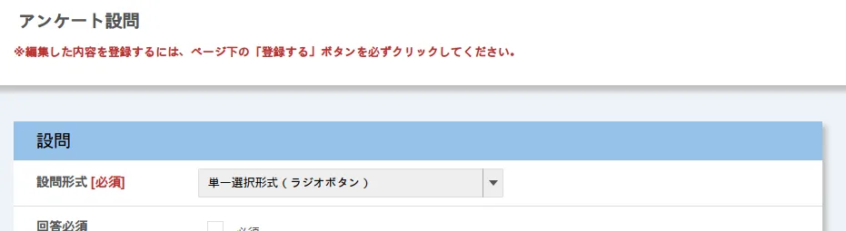 3. 必要事項を入力したら,画面下部の「登録する」を押して,設問を登録してください.この時点では設問が登録されただけで,アンケートの登録は完了していません.